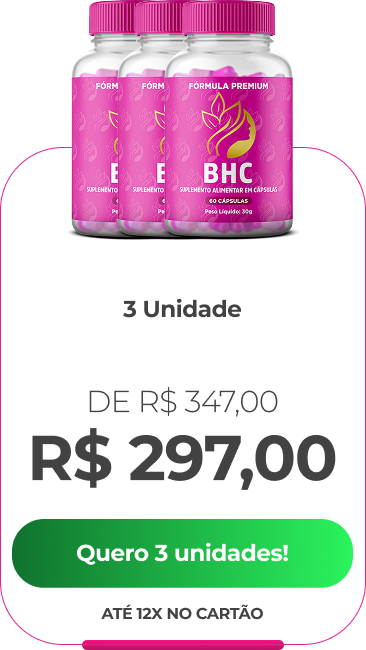BHC é um produto natural queridinho das mulheres, que traz os benefícios de potencializar um crescimento saudável e acelerado do cabelo, dando adeus as pontas duplas, oleosidade, ressecamento e muito mais!